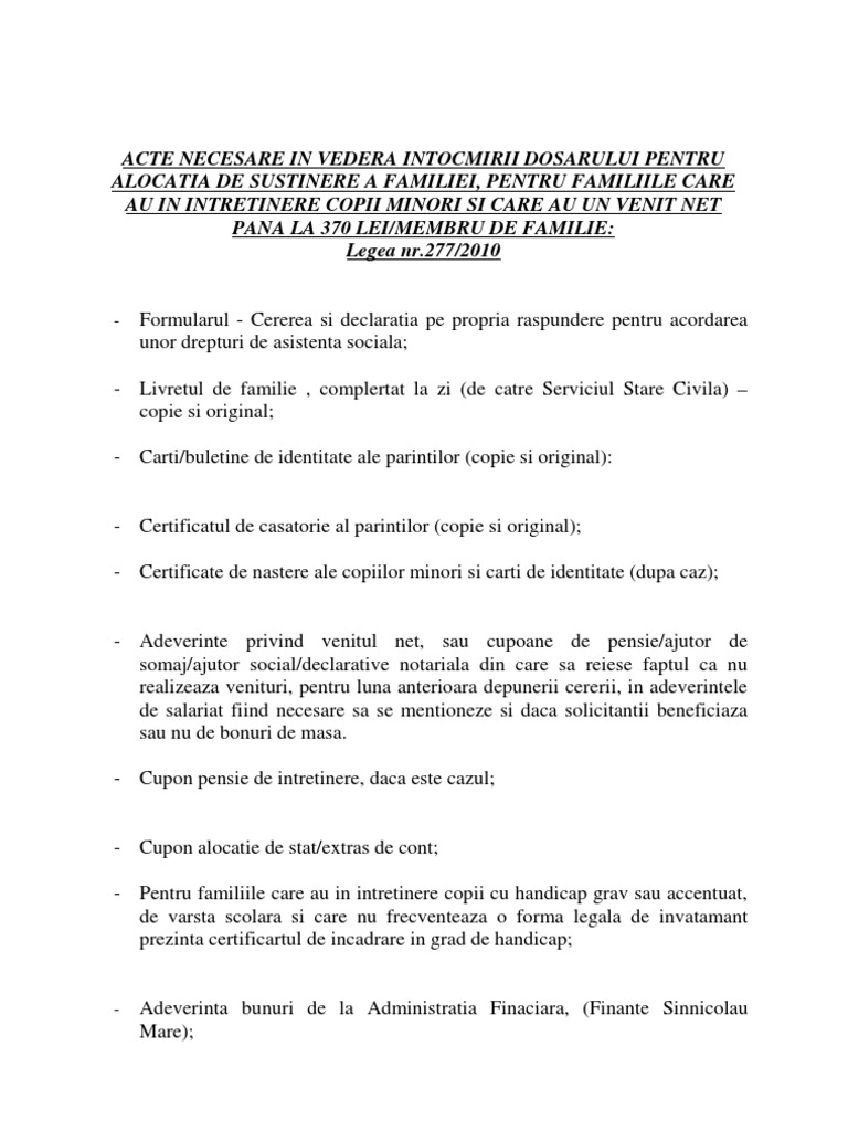 Acte Necesare Alocatie De Sustinere