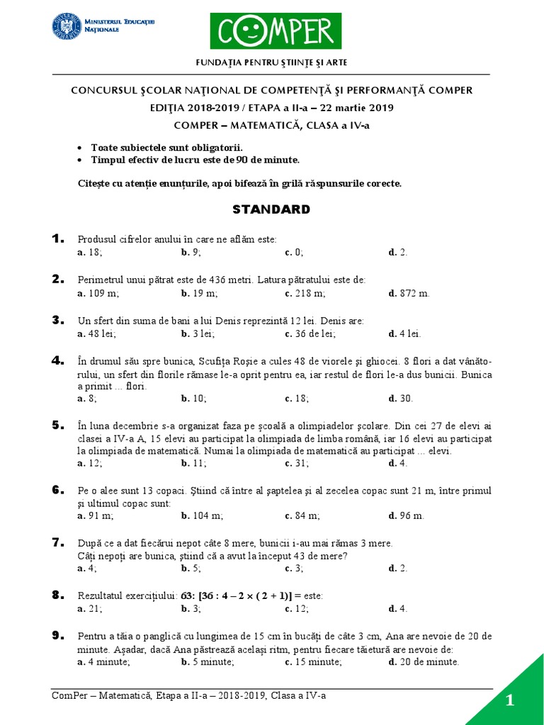Subiecte Matematică Comper 2020 Ce Trebuie Să Stie Elevii Si Părinţii După Etapa 1 Cum Se Corectează Grilele Concursului Update Romaniatv Net Mobi