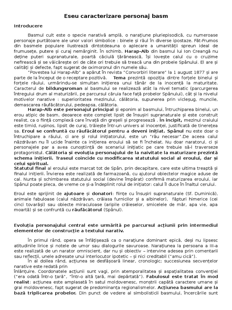 Eseu Caracterizare Personaj Basm Docx