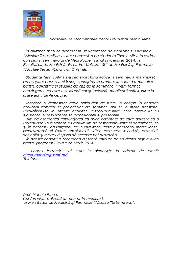 Scrisoare De Recomandare Student