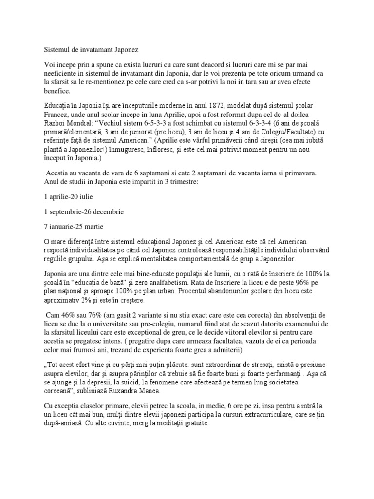 Sistemul De Invatamant Japonez