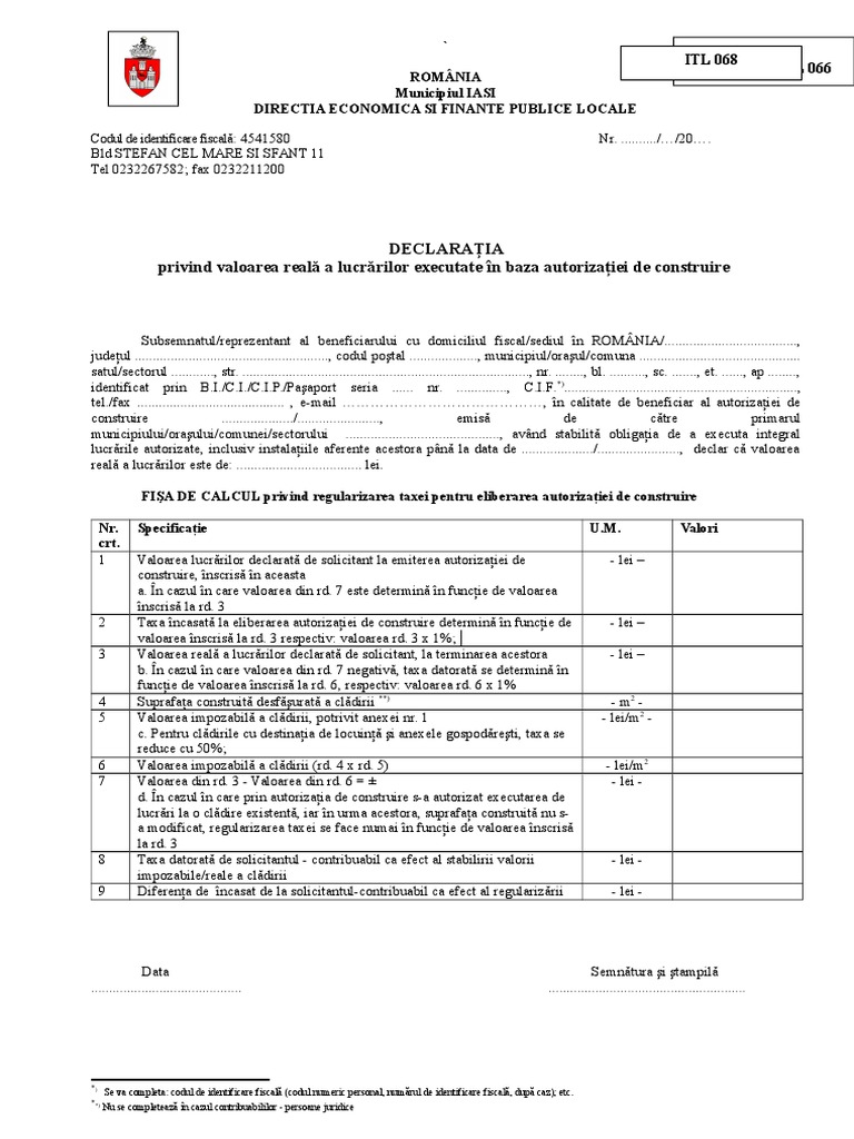 Declaratia Privind Valoarea Reala A Lucrarilor Executate In Baza Autorizatiei De Construire
